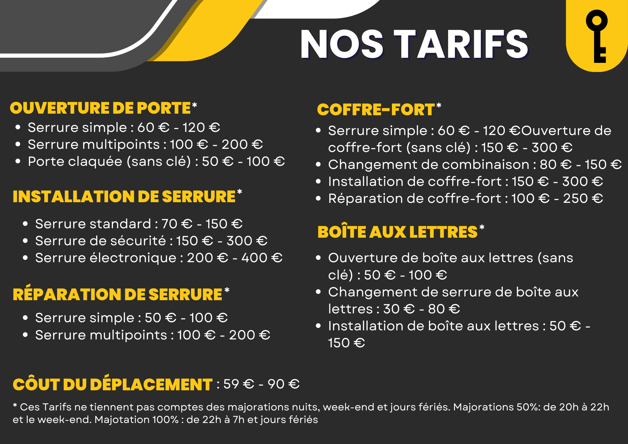 Nos tarifs